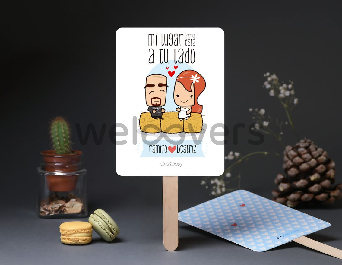 Abanico estilo pai pai para ayudar a los invitados a soportar el calor. Ideal para bodas celebradas al aire libre.