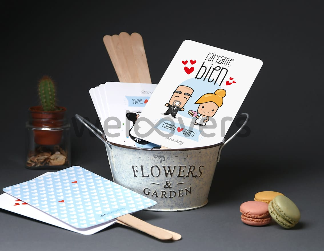Personalizado con los weloovers y vuestros nombres, fecha de boda y la frase molona.